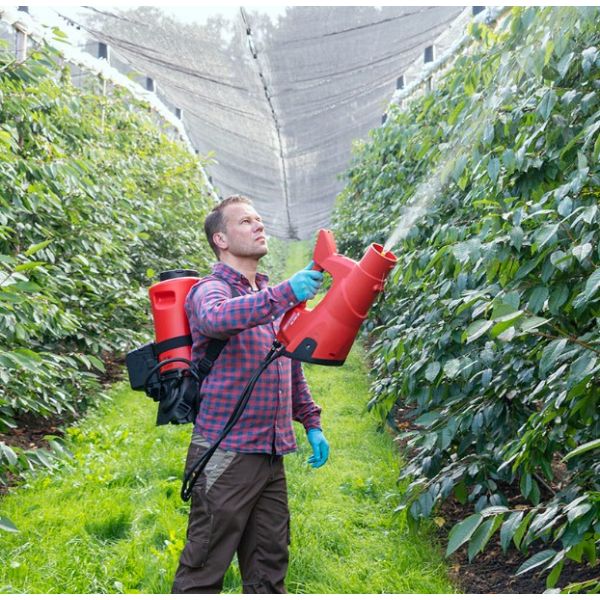 Équipée d’une batterie supplémentaire, l’unité AS 1200 est combinée à un pulvérisateur de la ligne «Accu-Power».