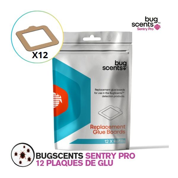 Ce lot de 12 plaques plaques de glu vous permettra de réutiliser vos pièges BugScents Sentry Pro, le piège qui révolutionne la détection et le contrôle des punaises! (Réf 110-000753)
