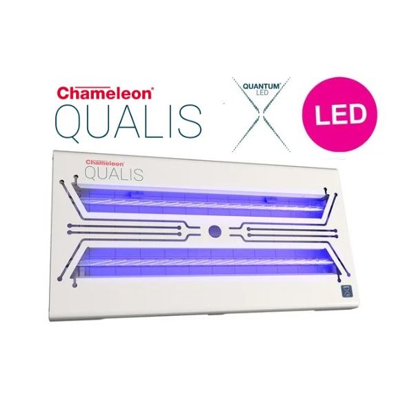 Le Qualis X est une lampe anti moustique ultra-fine (4 cm) en acier inoxydable 304. Deux tubes Quantum® X LED émettent une lumière bleue qui repousse les moustiques (UVA 370 nm) sur 360°. Les insectes volants se dirigent vers les plaques de glu, ce qui élimine moustiques et mouches sans bruit ni éclats. Le boîtier tout-métal résiste à l’humidité et affiche une finition brillante adaptée aux cuisines, laboratoires, commerces et halls d’accueil.