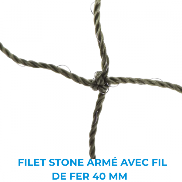 Le filet armé en mailles de 40 mm est fabriqué en PEHD, sa particularité est d’être fabriqué avec un fil en inox.