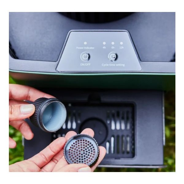 Son attractant (fabriqué en France) attire les femelles moustiques, tigres et communs, et préserve les autres insectes.
