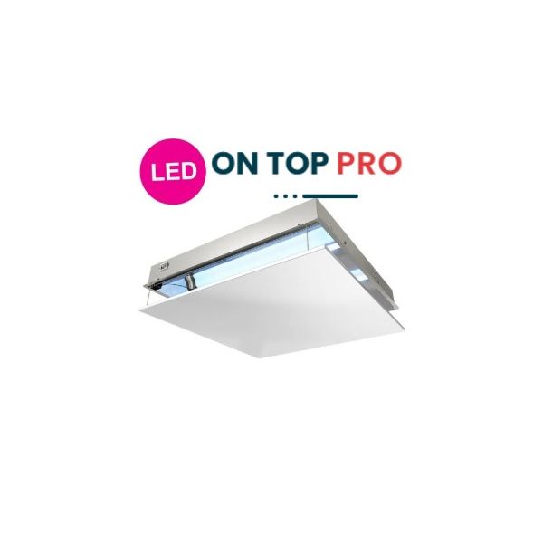 Il est équipé de deux tubes LED Quantum X gainés et d'un grand réflecteur en aluminium poli qui permettent de lutter efficacement et économiquement contre les infestations d'insectes volants dans les espaces publics. Durable, facile à entretenir, avec un accès rapide aux deux plaques de colle optimisées pour la technologie LED, l'ON-TOP PRO X s'harmonise avec le motif des dalles des faux plafonds classiques.