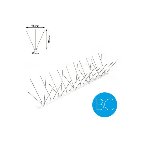 Chaque module est formé d’une base/semelle de 50 cm de long en polycarbonate protégé contre les rayons ultraviolets et de pics en V de largeur variable en acier inoxydable avec une pointe émoussée.