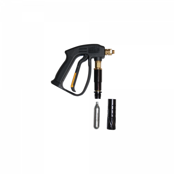 Une cartouche de gaz très puissante propulse la poudre jusqu’à 4,5 mètres dans la lance.