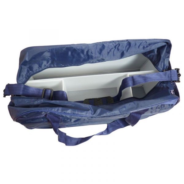 Il comprend une poche latérale, une poche d’extrémité, des anses en polypropylène, une bandoulière, une base en PVC renforcé et un insert avec des compartiments séparés.